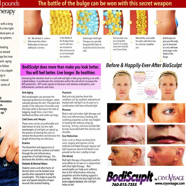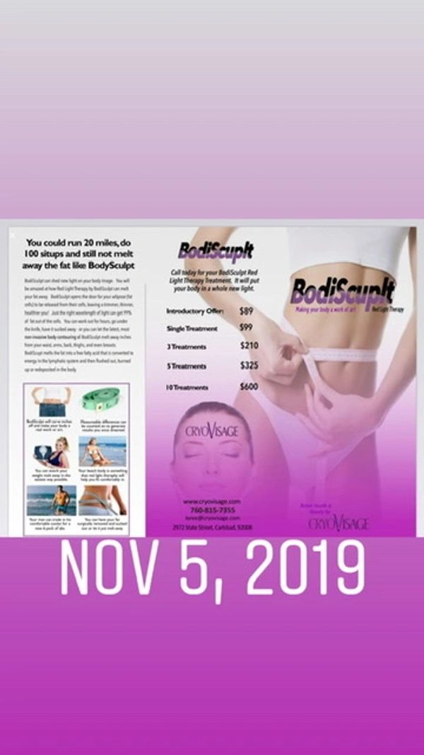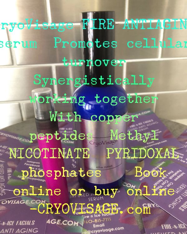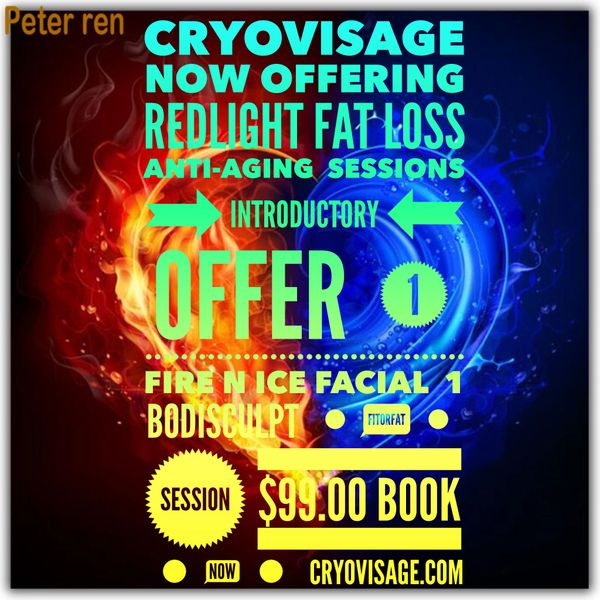 THE Revolutionary Cryo therapy which reboots your production of collagen my freezing your skin temp, then we have a serum that gets the SIRTUIN ANTI AGING GENE to fire increasing cell turn over and renews your skin and allows it to glow like you have just spent $2000. on a face peel...all this for only $25.00 for your 1st visit and it only takes 12 minutes.